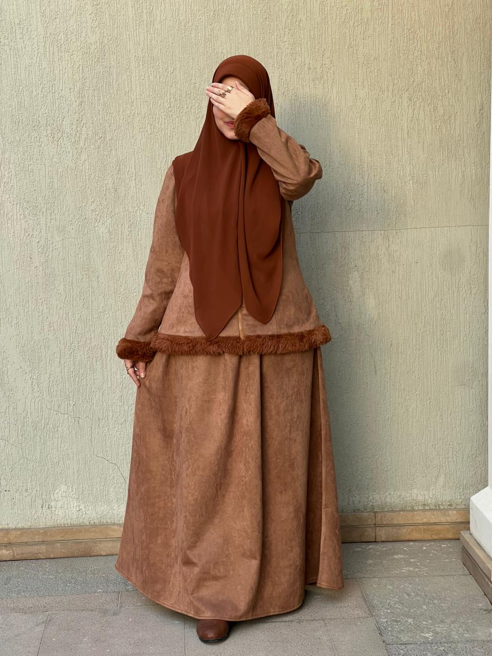 ✔لمسة الفرو في الكم والوسط بتدي شكل شتوي رايق من غير ما تكون مبالغ فيها🤍